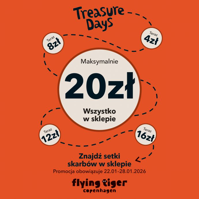 Treasure Days we Flying Tiger Copenhagen to doskonała okazja na zakupy. Od 22 do 28 stycznia wszystkie produkty w sklepie kosztują maksymalnie 20 zł. To setki pomysłowych skarbów i inspirujących drobiazgów, które tylko czekają na odkrycie!